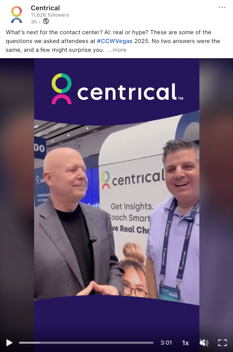 This month, I attended CCW Vegas, where Centrical was named Workforce Innovation of the Year at the CCW Excellence Awards. Winning this prestigious award is a testament to the impact our platform is having on contact centers and frontline teams around the world, and I couldn't be prouder of our phenomenal team.